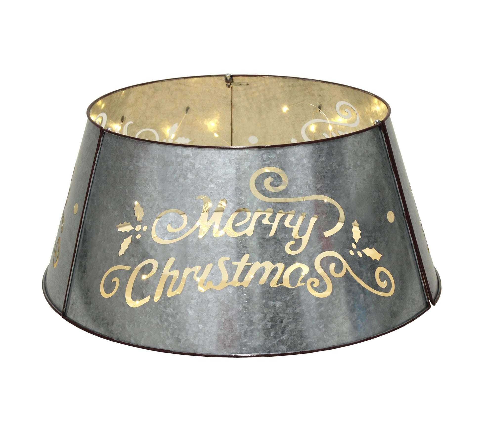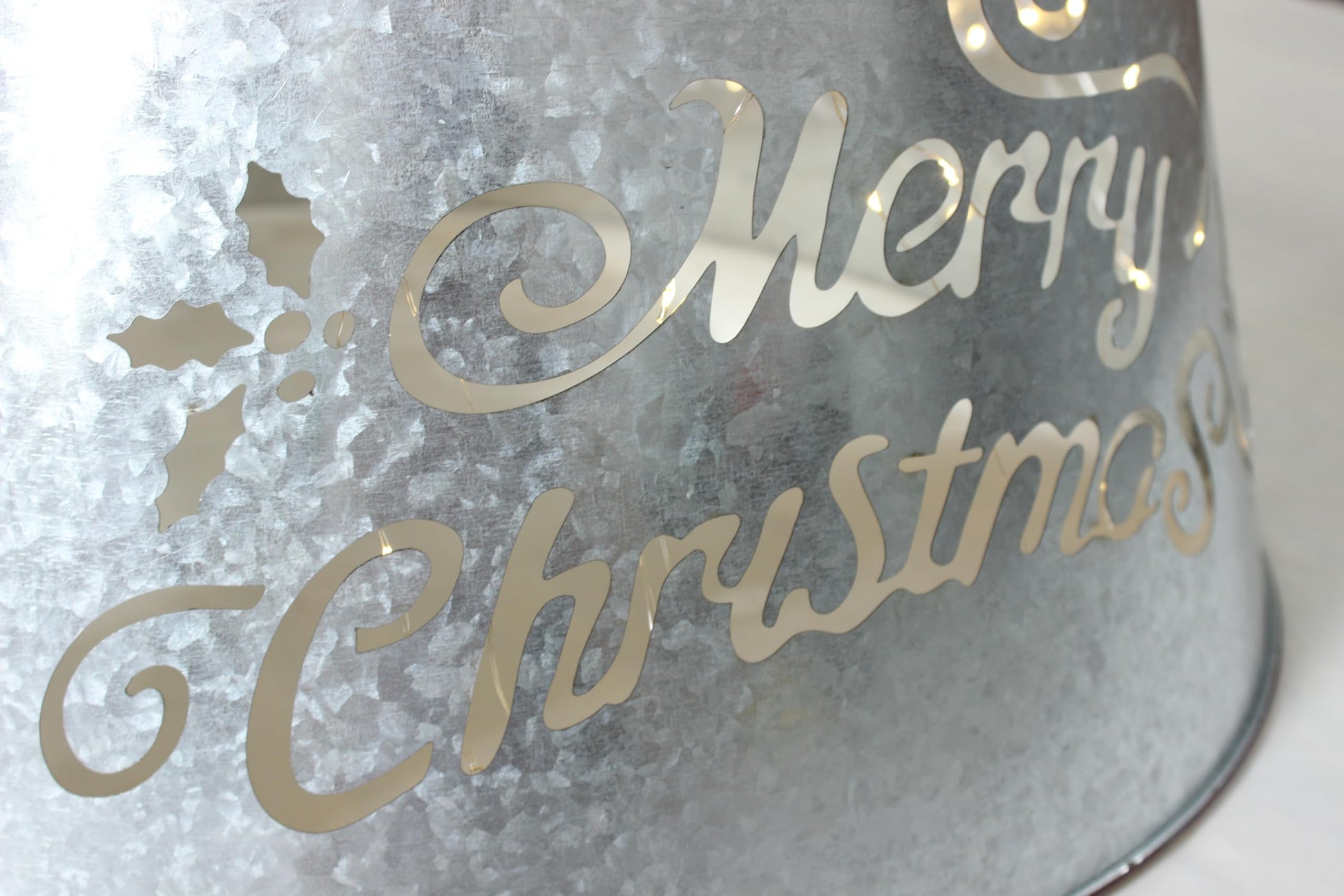 21'' Galvanized Metal Merry Christmas Tree Collar, Moden Country