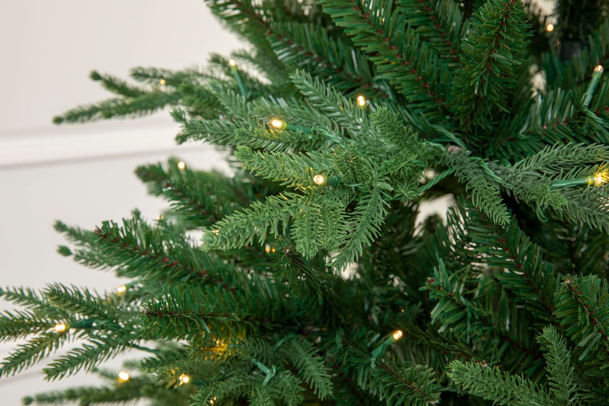 When people talk about traditional Christmas tree, they think of the Nordmann Fir Christmas tree. That is right, Nordmann Fir has a classic Christmas tree shape with broad, pyramidal habit, it marked by horizontal branches filled with soft needles, durable for hanging ornaments yet aren’t prickly to touch. Inspired by the nature, our Fine Shape Nordmann Fir is a combination of 2 types of leaves, the dark PVC fitted on the inside and the authentic feeling Nordmann fir tips towards the outside, creating a beautiful 2 tone effect that will make it great Christmas tree to showcase your ornaments.