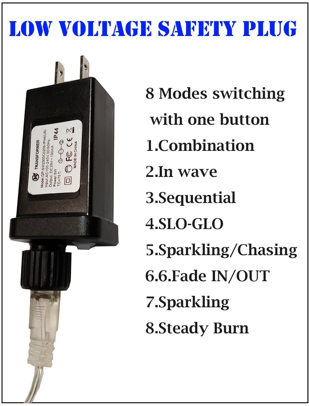 - 8 different Modes/settings. High level waterproof bulbs, suitable for indoor and outdoor use.