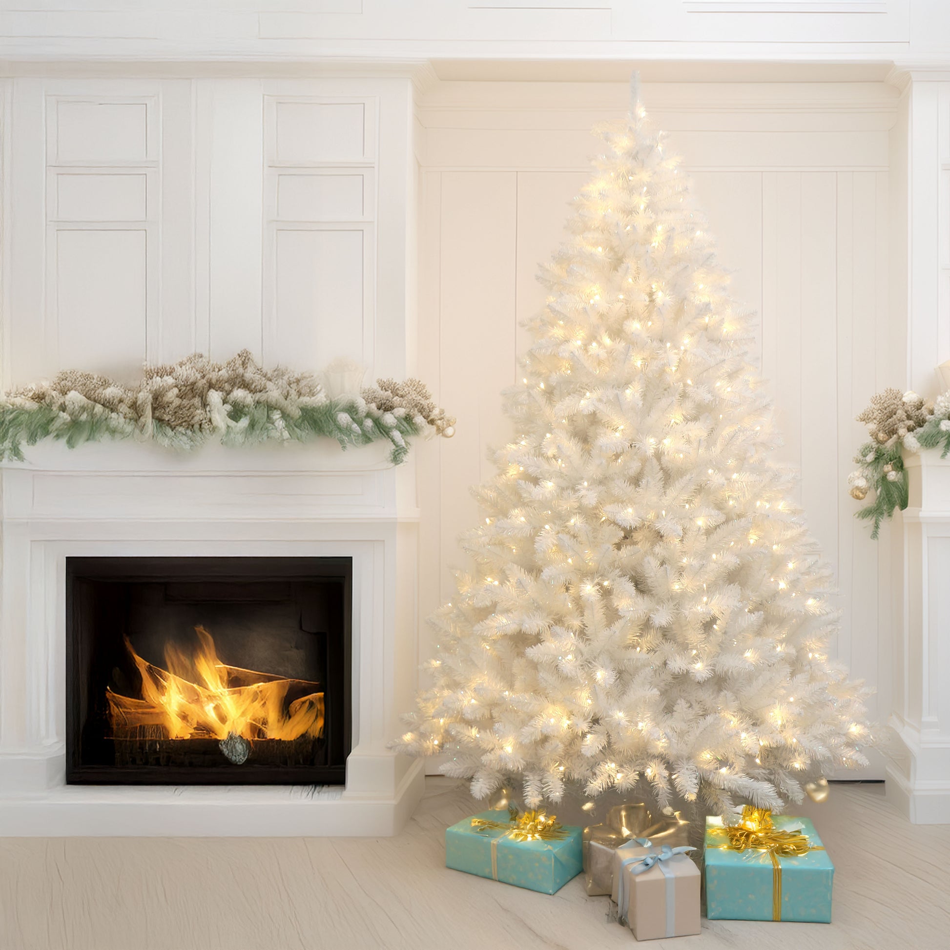 Sparkling White Christmas Tree Pre-lit with Warm-white LED Lights